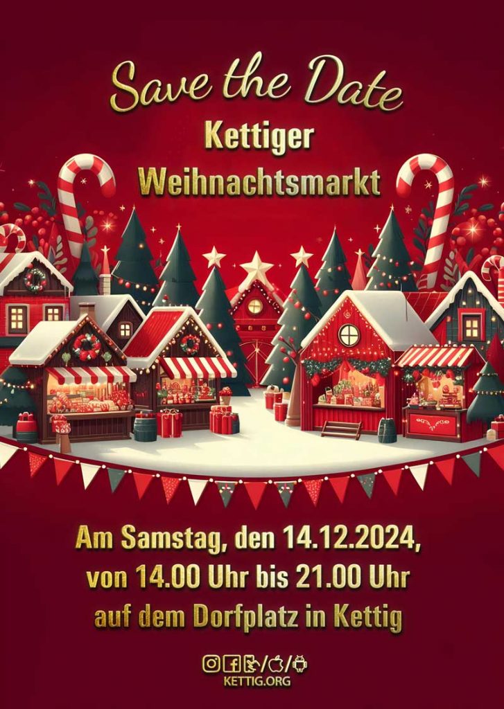 Ankündigungsgrafik „Save the Date“ für den Kettiger Weihnachtsmarkt 2024